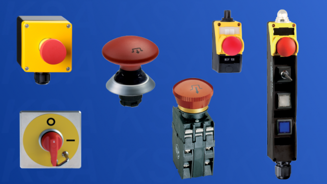 Not-Halt-Schlagtaster und Hauptschalter mit Not-Halt(Aus)-Funktionalität
