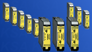 Für die sicherheitsgerichtete Auswertung der Signale von Sicherheitssensoren und Sicherheitsschaltern stellt Schmersal eine große Auswahl an Auswertebausteinen zur Verfügung. Die klassische Lösung des Sicherheitsrelaisbausteins wird oft auch als Sicherheitsbaustein, Sicherheitsrelais oder Not-Aus-Relais bezeichnet. Die neue Reihe PROTECT SRB-E kann dabei mit einer vergleichsweise geringen Anzahl von Varianten einen großen Funktionsumfang abdecken. Das wird durch die unkomplizierte Konfigurierbarkeit der einzelnen Geräte für die Verarbeitung unterschiedlicher Eingangssignale sowie Start und Abschaltszenarien erreicht. Teil der SRB-E-Gerätefamilie sind auch Lösungen für die Auswertung von bis zu 4 Sensoren (kaskadierbar) bis Pl e / Kategorie 4, mit 2 Abschaltebenen, mit sicherer Stillstandsüberwachung und sichere Zeitrelais.